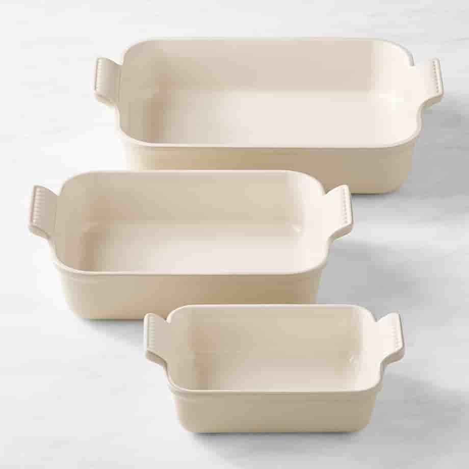 You’ll be smitten with this beautifully designed bakeware set that’s as amazing to look at as it is to use. Featuring minimalist designs with creamy exteriors and glam gold-finished handles made just for us, these pans are a joy to cook with. Coated with a non-stick ceramic finish, The bakeware set—two baking sheets, muffin tin, rectangular pan, square pan, loaf pan, two round pans and a gold cooling rack—is versatile enough to take on any recipe and makes a fabulous wedding or housewarming gift. To keep things orderly inside kitchen cabinets, our exclusive set includes two organizers that corral all of the components.