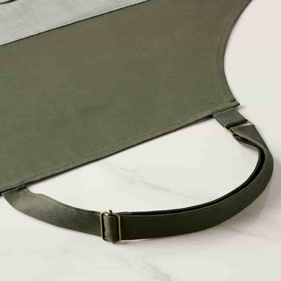 I really like the elegant herringbone design and the quality of the cotton fabric. It feels comfortable to wear and holds up well after washing. Would love if the fit was a bit more adjustable, but overall a great apron for daily use!